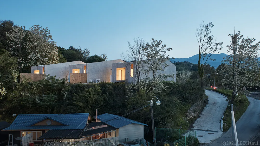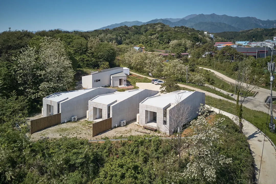 → 주변이 나무와 풀로 둘러쌓여 있고, 마을도 있어요. 대포항을 바라보고 있어서 멀리서나마 바다를 볼 수 있어요.